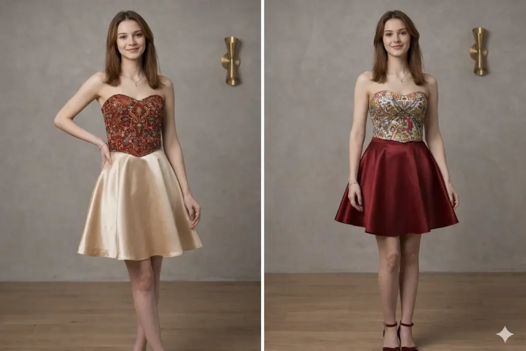 Corset tops also pair beautifully with skirts. A structured corset combined with a flowing skirt creates a feminine silhouette that feels elegant and modern.